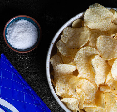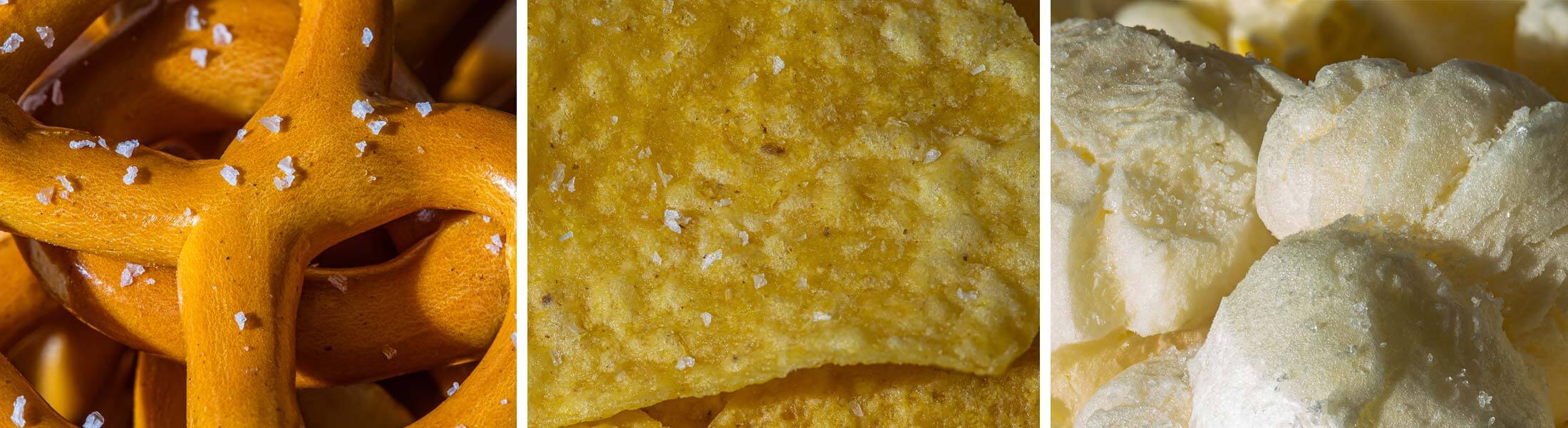 Clockwise from top left: Macro Flake™, Kosher Flake, Mini Flake™ and Micro Flake™ under 5x magnification